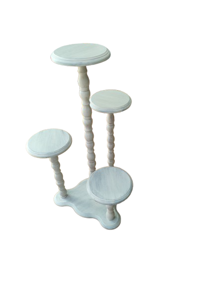 Αναπαλαιωμένο ξύλινο τραπέζι με shabby chic φινίρισμα. Ένα ιδιαίτερο και κομψό κομμάτι για διακόσμηση ή αποθήκευση μικρών αντικειμένων, ιδανικό για vintage ή ρουστίκ διακόσμηση.Διαστάσεις:Ύψος: 75 εκ.Διάμετρος (κάθε επιφάνειας): 30 εκ.