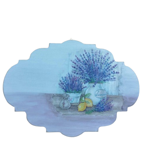 Κομψή χειροποίητη ξύλινη ταμπέλα με ζωγραφισμένο μοτίβο λεβάντας και λεμονιών. Ιδανική για κουζίνα, καθιστικό ή ως δώρο. Προσθέτει χαλαρωτική, provence αισθητική σε κάθε χώρο.