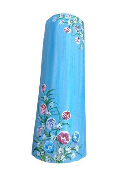 Κεραμίδι ζωγραφισμένο στο χέρι, με φόντο γαλάζιο και πολύχρωμα λουλούδια. Μοναδικό κομμάτι που δίνει χρώμα και φρεσκάδα στον χώρο σας.
